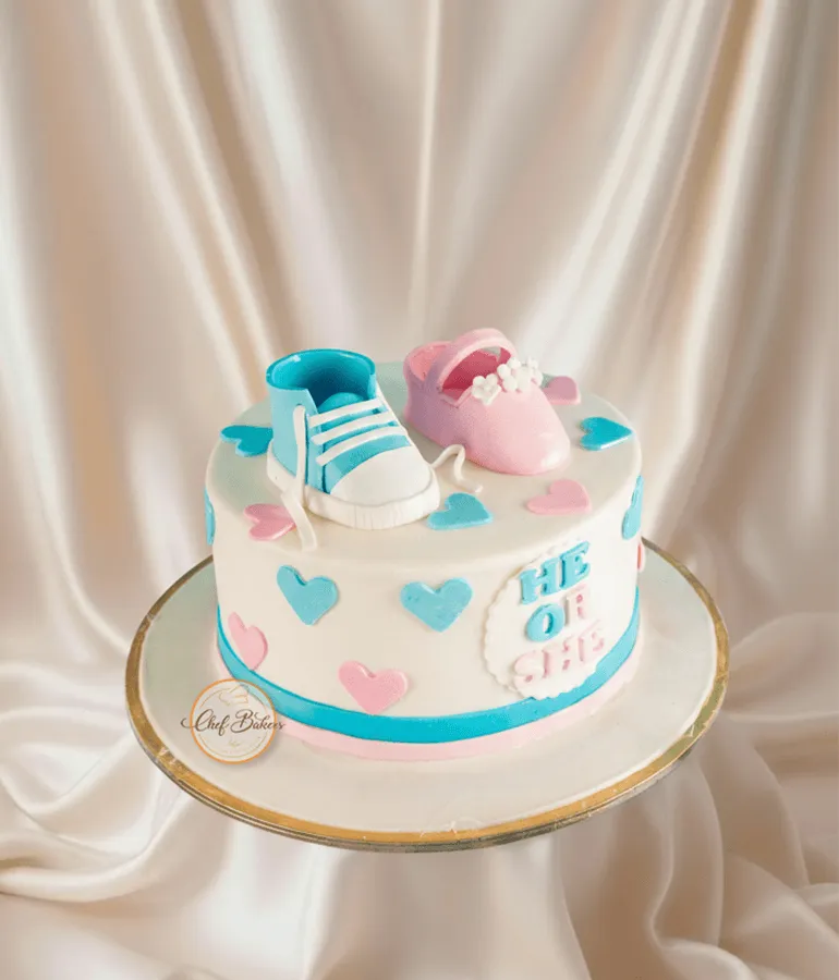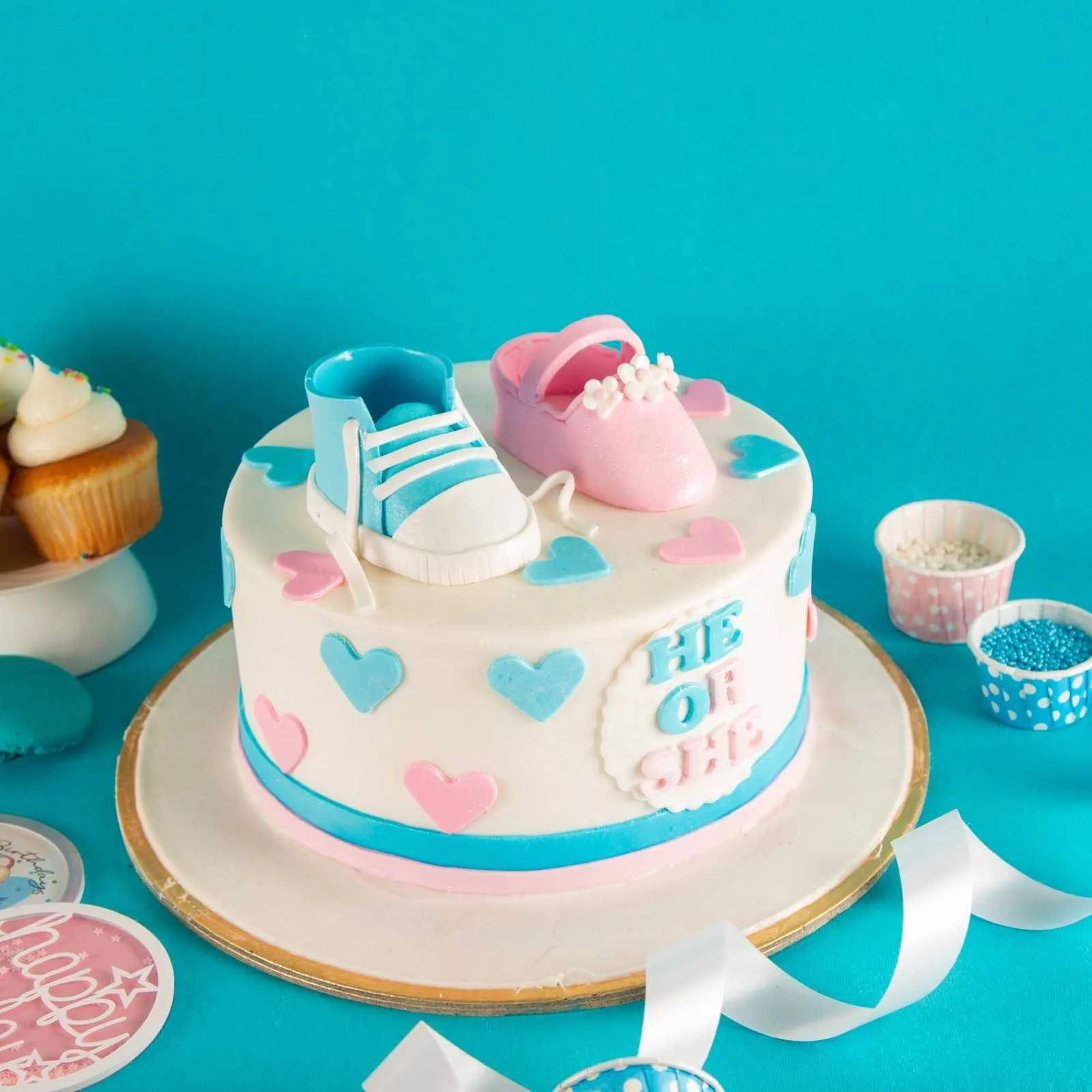 Sweet baby boy or girl cake with pastel accents — perfect for showers, birthdays, or gender reveals.