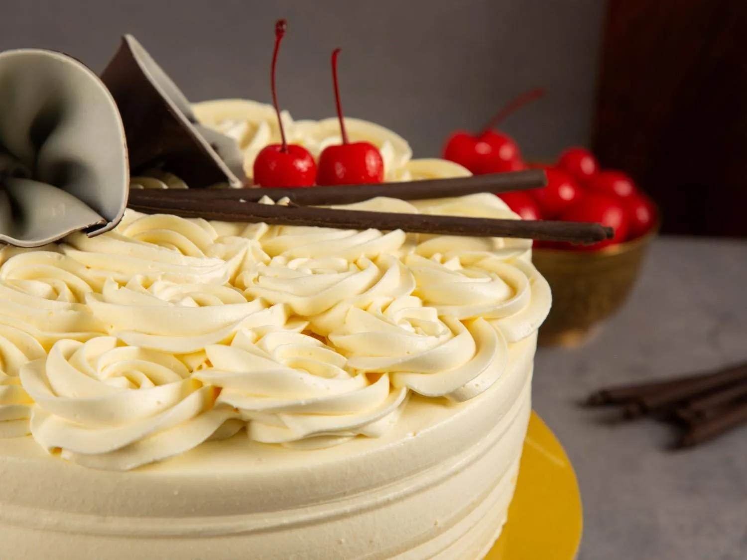 French Vanilla Bourbon Cake with soft vanilla sponge and bourbon-infused cream, offering a smooth, rich, and flavorful dessert experience.