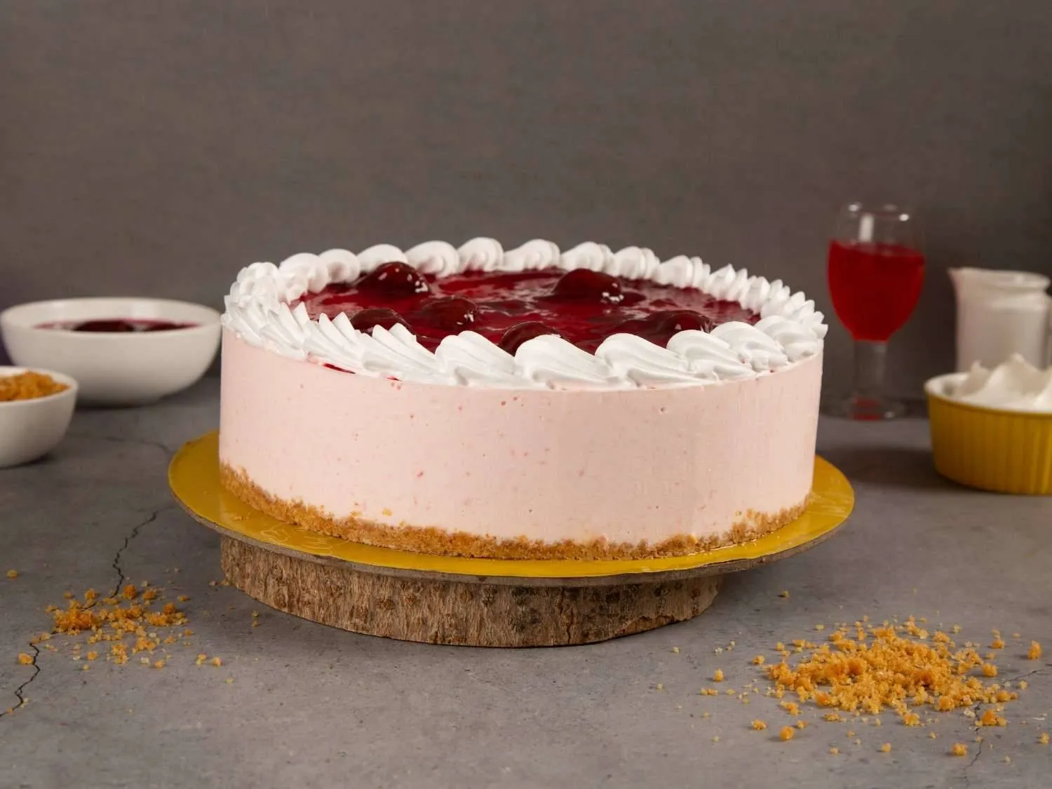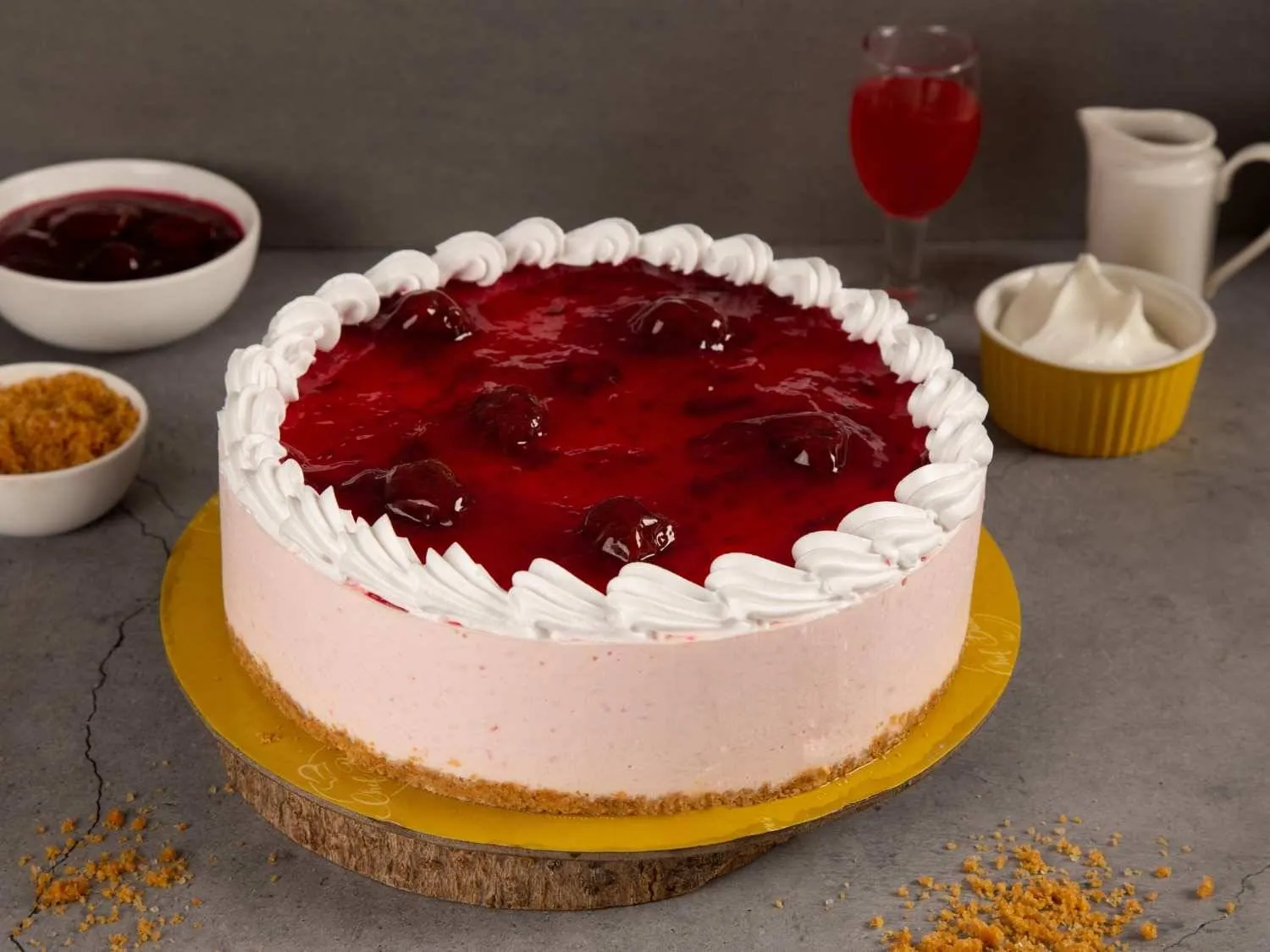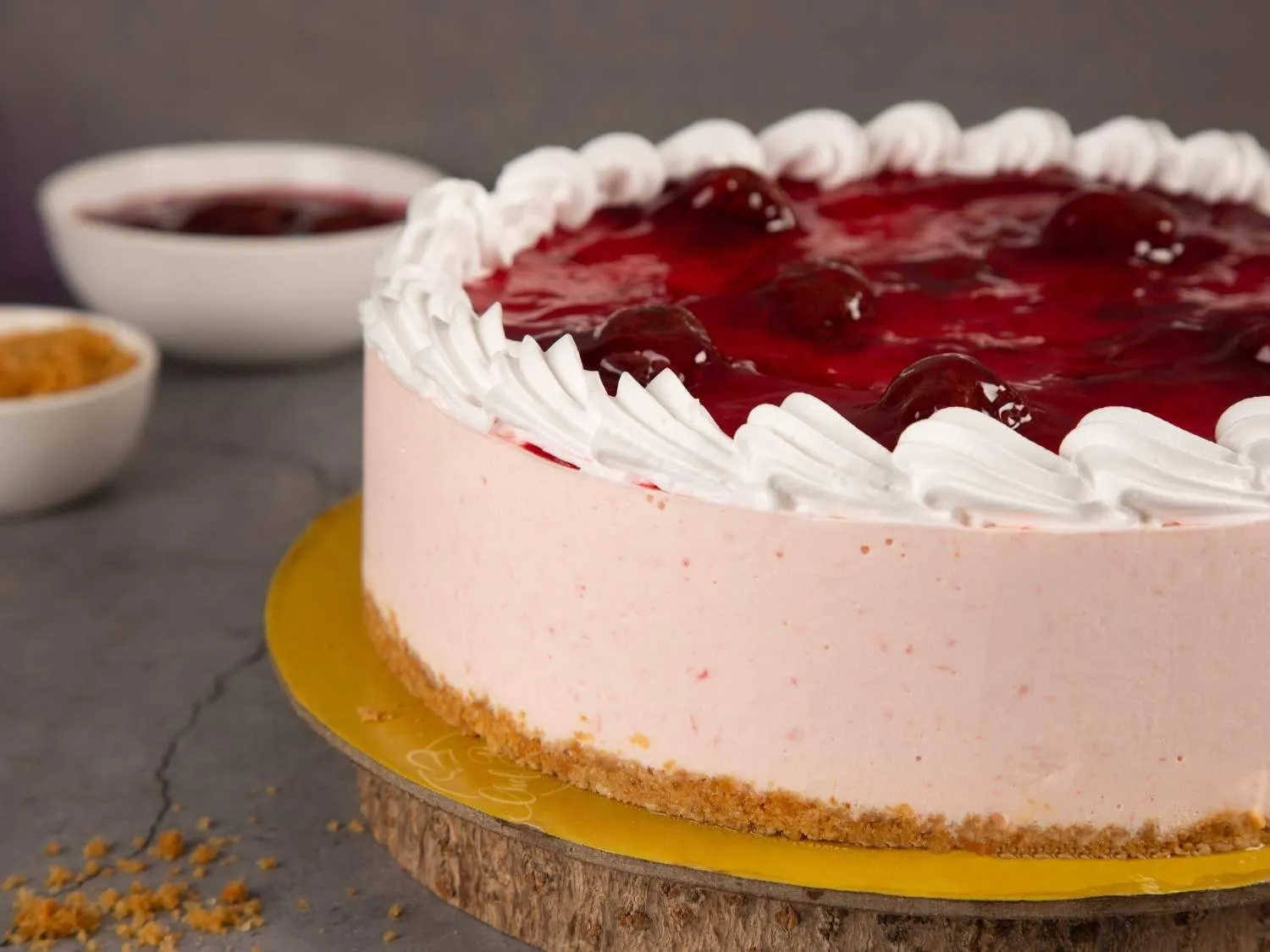 Strawberry Cheesecake with a buttery crust, creamy filling, and fresh strawberry topping, offering a perfect mix of sweetness and tang.